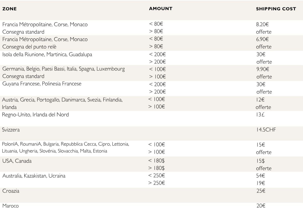 I tempi di consegna sono dati a titolo indicativo e i ritardi non possono portare a danni a carico di LE JACQUARD FRANÇAIS o all'annullamento della vendita. Qualsiasi consegna parziale costituisce legalmente un contratto separato e sarà fatturata e pagata secondo le modalità di pagamento previste.