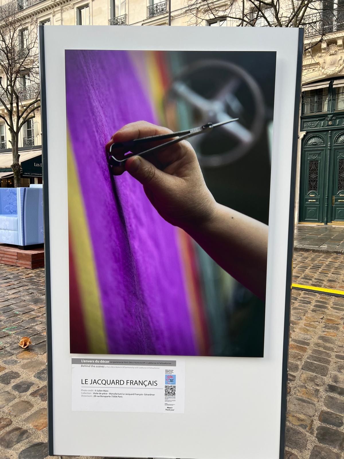Il rovescio del décor, Le Jacquard Français ha presentato anche un’opera fotografica esposta in Place Saint-Germain-des-Prés, nell’ambito di una partnership con LabKorner e YellowKorner. Realizzata nel cuore della nostra manifattura di Gérardmer, la fotografia cattura un momento chiave del nostro savoir-faire: il controllo del tessuto, una fase decisiva in cui ogni pezzo viene esaminato con estrema cura, diritto e rovescio. Un istante sospeso, in cui la mano esperta garantisce l’eccellenza, la bellezza e la durabilità delle nostre creazioni. Attraverso queste due installazioni, Le Jacquard Français rende omaggio a ciò che anima la Maison dal 1888: il rispetto del gesto, la trasmissione del sapere artigianale e il dialogo costante tra materia, creazione ed emozione.