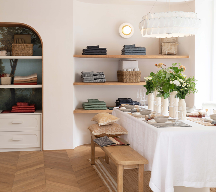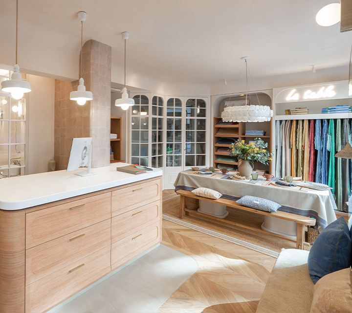 Concepita come una casa aperta, la boutique di Lione offre un'atmosfera luminosa e accogliente. Qui si scoprono tutti gli universi della Maison, biancheria da tavola, da bagno, da camera, da cucina e da esterno, messi in scena in un arredamento raffinato, che invita alla scoperta e all'ispirazione. Volumi, texture e colori si incontrano per offrire una visione contemporanea dell'arte della biancheria.