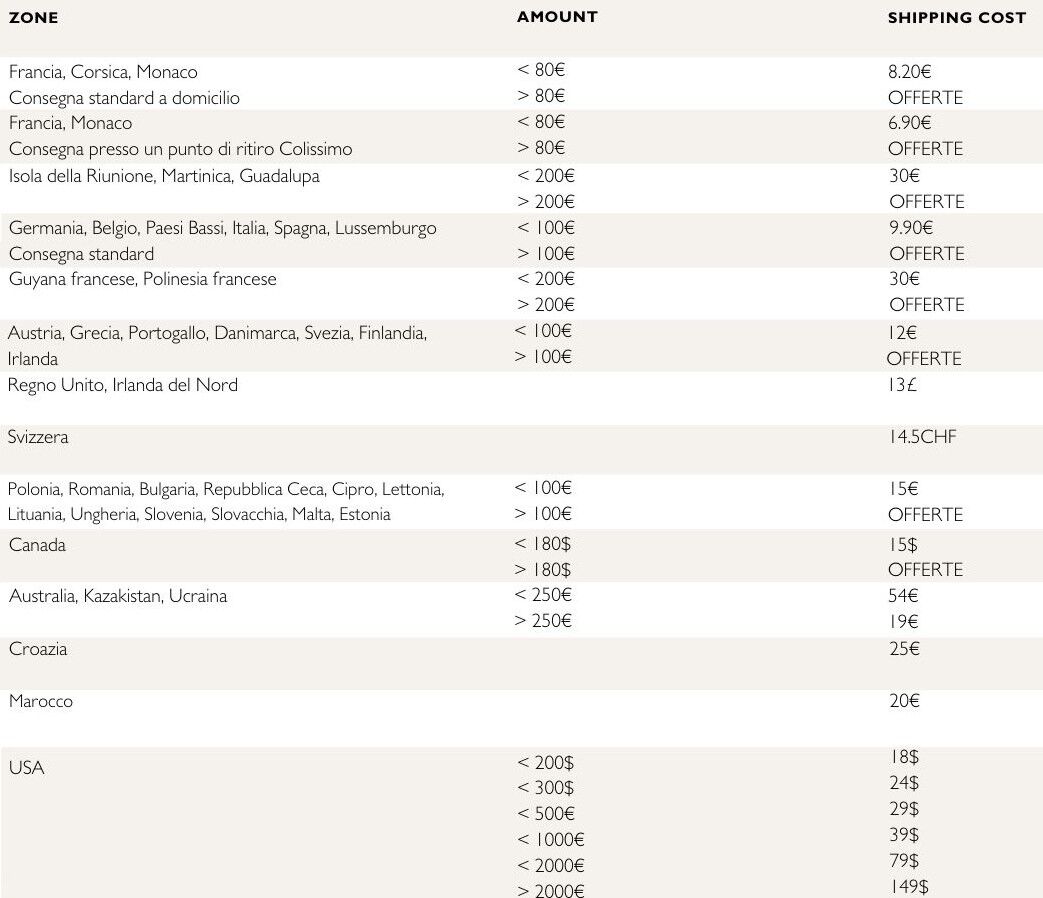 COSTI DI CONSEGNA :